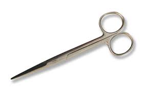 Tijeras de hilo: tienen puntas romas para no cortar las estructuras cercanas a la sutura y también sirven para preparar material de sutura por parte de la arsenalera.